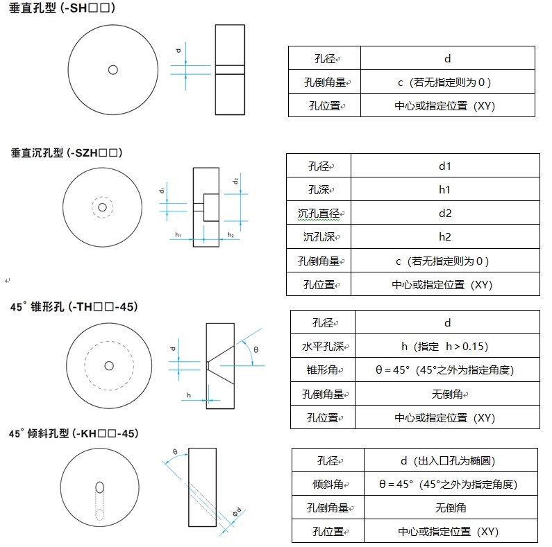 西格玛光机可以在有孔平面基板或平行平面基板上进行客户要求的孔加工。除贯穿孔之外,也可以进行沉孔,锥形孔,倾斜孔,盲孔等的特殊加工。通过精密加工,Sigmakoki可以在不损坏玻璃的情况下加工高精度的孔。也可以进行下表中没有指定的尺寸的孔或沟槽等打孔片的加工。这种情况下,除基板或孔加工费用之外,还需要夹具和工具的费用。请与西格玛光机营业部门联系。