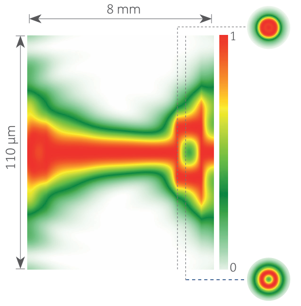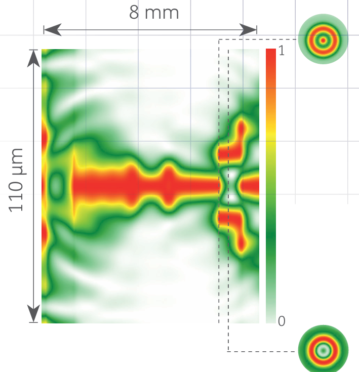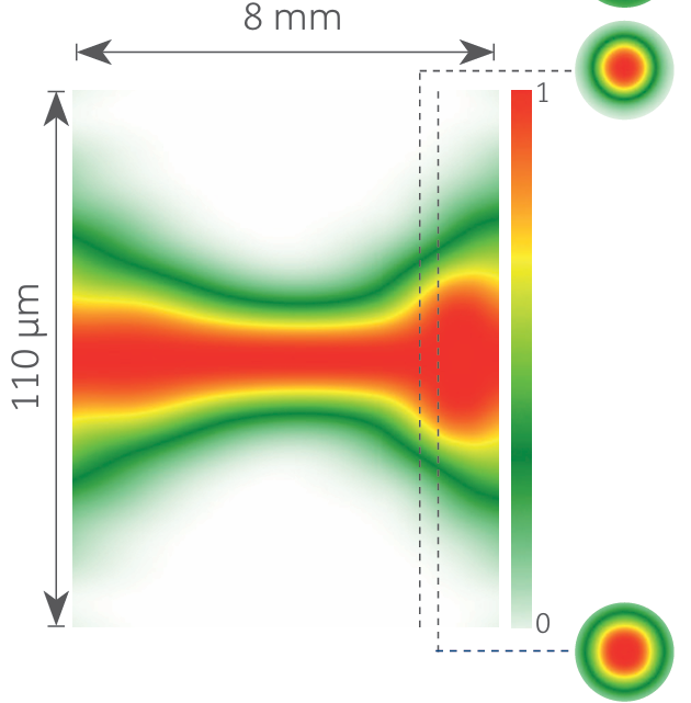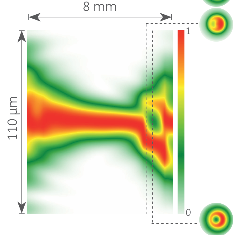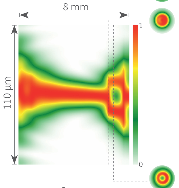 根据a|AiryShape光束整形镜的工作原理,可以在不同的工作距离下在焦平面上产生不同的光束轮廓,而无需在系统设置中添加其他组件。