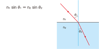 斯奈尔定律,其中θ1是入射角,θ2是折射角。n1和n2是两种介质的绝对折射率。