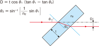 平行平板的光束移动D,)是指光线穿过平板后,出射光线相对于入射光线在 横向方向(平行于平板表面) 上的平移距离。这一现象是由于光线在平板的两个界面(入射面和出射面)发生折射导致的。