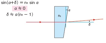 楔形板的光束偏向角δ,楔形板(Wedge Plate)是由两个不平行的平面构成的透明光学元件(如玻璃楔镜),其特点是两表面之间存在一个小的夹角α(楔角)。当光线通过楔形板时,由于折射作用,出射光线相对于入射光线会发生偏向,其角度变化称为偏向角δ。