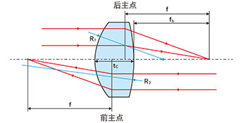 1/f=(n-1){1/R1 -1/R2 +tc (n-1)/(R1R2n)}
