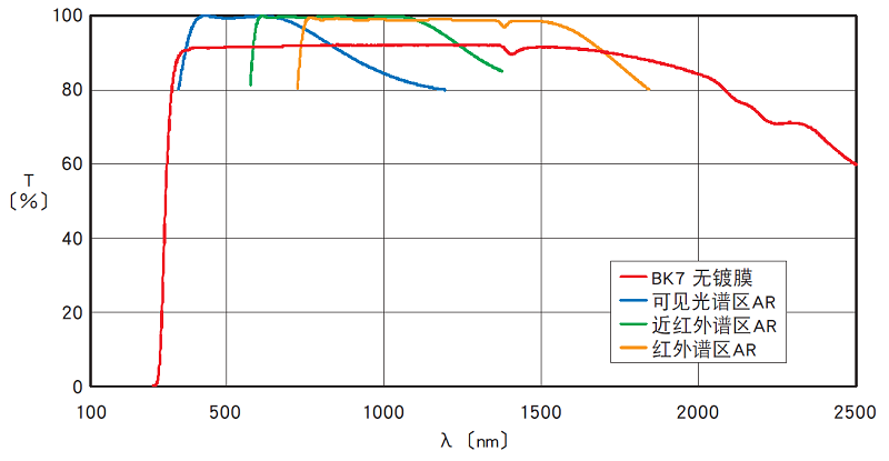-无镀膜产品因透镜的正面和反面都有较大的反射损失,所以透过率为 90%左右。