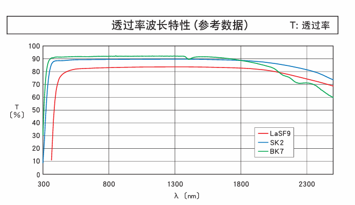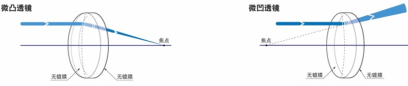 OptoSigma微小透镜是单透镜,焦距随波长变化。各波长的焦距请参考网页上的“焦距随波长变化特性数据”确认。平凸OptoSigma微小透镜的入射光线有方向性。请务必从凸面一侧射入平行光。否则球差会变差,焦点光斑会变大。由于OptoSigma微小透镜未镀有防反射膜,透镜的正面和反面都存在反射损失,所以透过率为90%左右。