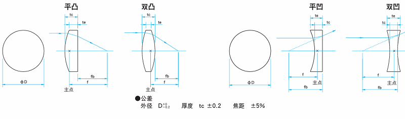 外径1.5-4mm,焦距-10mm-10mm,OptoSigma小透镜