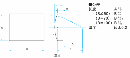 【例】CLB-30100-500P OptoSigma平凸柱面透镜指定近红外用(633〜1064nm)的防反射膜时,变成CLB-30100-500PIR1。