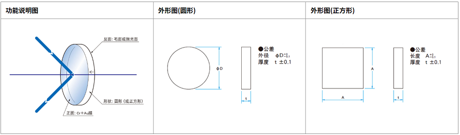 OptoSigma金膜反射镜_西格玛光机功能说明图和外形图: