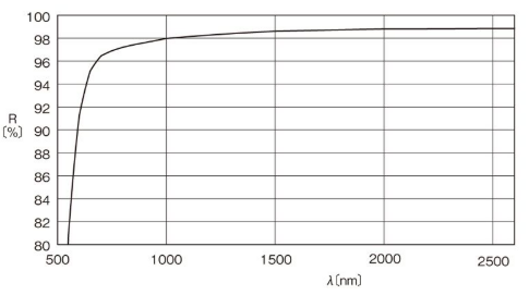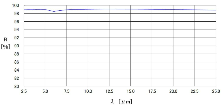 金膜反射镜TFG,TFGS系列反射率波长特性(红外,2.5um-25um)(参考数据)R:反射率
