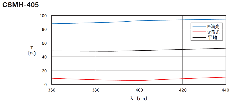 -非偏振分束立方体使用激光等的直线偏光时,反射率或透过率随偏光方向变化。如果要调整分束比为1:1时,请45°倾斜偏光方向或使用圆偏光。