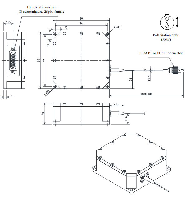 四波长紧凑型可见激光器(4 wavelength laser light source)/微型激光器轮廓图: