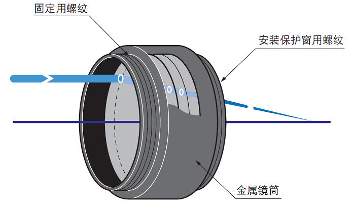 -为了保护透镜以避免被激光加工时溅出的粉末所损伤,可以配置另外销售的保护窗玻璃。
