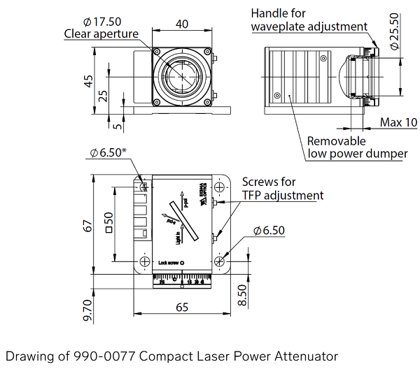 - 可变激光分光镜通光孔径:990-0077为Ø17 mm;990-0078为Ø22 mm