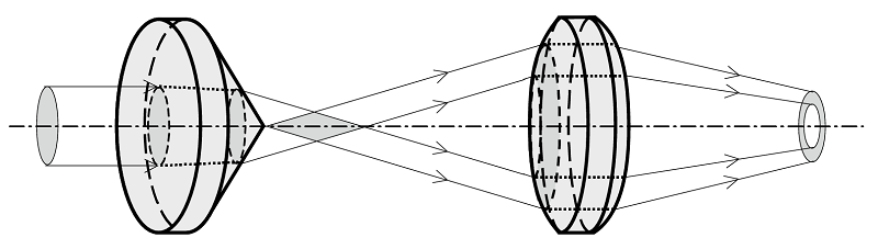 图2两个精密锥镜(或标准锥透镜)共同产生一个厚壁空心光“管”。