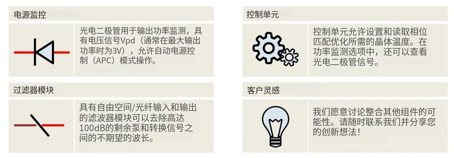 - 单通道和高效率,针对特定输入泵浦进行了优化