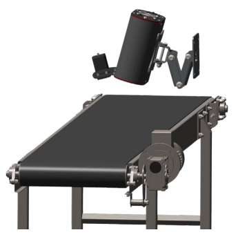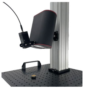 下图的示意图展示了最佳设置方案:1.0-10.0um中红外光源以150mm的理想工作距离正对工作台或传送带安装。该装置设计兼容标准的100mm VESA壁挂支架,适用于实时生产测量。同时图中还包括了代表收集光学器件的NLIR的SAMPLER附件。在实际测量场景中,光纤连接到SAMPLER并将光引导至MIDWAVE光谱仪进行数据采集。