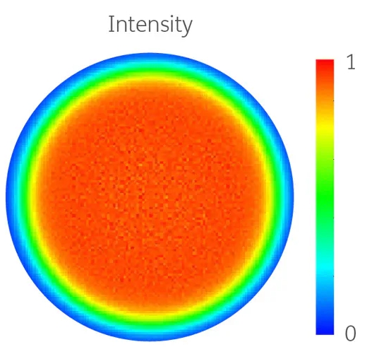 a|TopHat Tune Circle可调非球面镜光束整形器针对300至1600nm的波长范围进行了优化,通过其高精度安装系统保证了完美的对准。可调圆形平顶光整形器在光束均匀性方面也表现出色。如下面的模拟强度分布所示,该系统产生了完全均匀的强度分布。此外,可调圆形平顶光整形器的外径为30毫米,可以轻松地安装在任何标准支架上,如a|VariMount,只需连接到调焦透镜即可开箱即用。