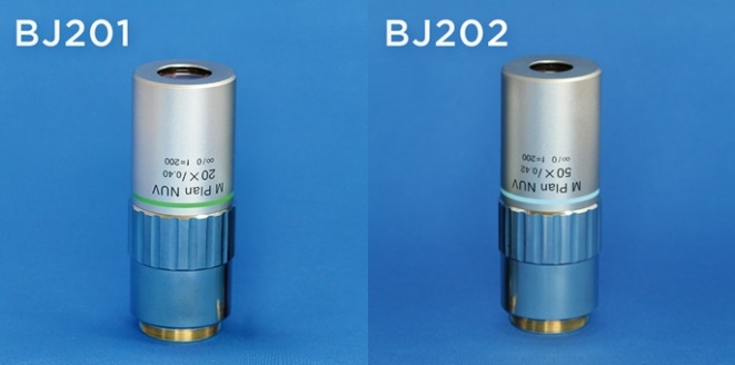 BJ201和BJ202系列近紫外物镜提供20倍和50倍的放大倍率,焦距分别为10毫米和4毫米。它们专为355纳米近紫外波段(如YAG激光)至可见光范围设计,能有效校正像差,确保加工时图像清晰、定位精准。近紫外校正物镜系列能同时补偿近紫外线(355nm)和可见光线下的色差,是激光修复应用的最佳选择。355物镜BJ201型号,焦距10mm,数值孔径0.4,工作距离15.6mm,分辨率0.54μm;BJ202型号,焦距4mm,数值孔径0.42,工作距离13.3mm,分辨率0.52μm,NUV物镜可以满足近紫外激光加工及可见光观察的高精度需求。