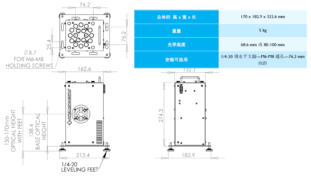 300W氙弧灯配套的Sciencetech的LH系列灯箱,300W无臭氧氙弧灯, 300W氙弧灯配套的触屏电源, 直径25.4 mm 的准直熔融石英光学元件,以及与9055单色仪F值匹配的熔融石英成像光学元件。