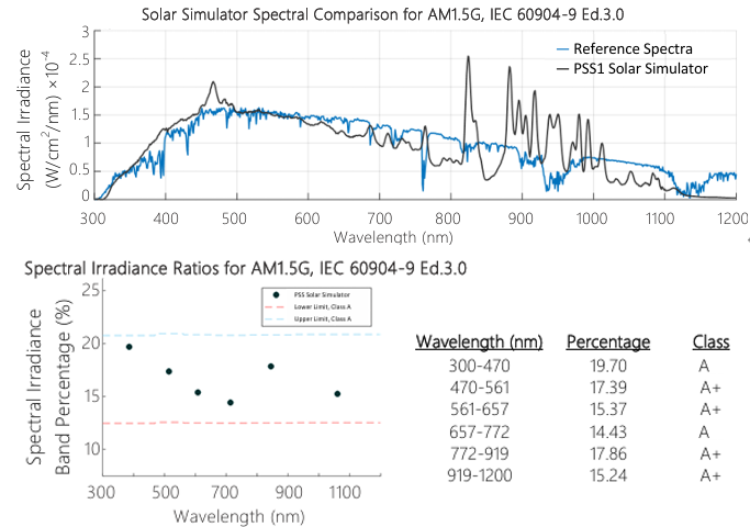 Sciencetech大面积脉冲太阳光模拟器的光谱匹配图: