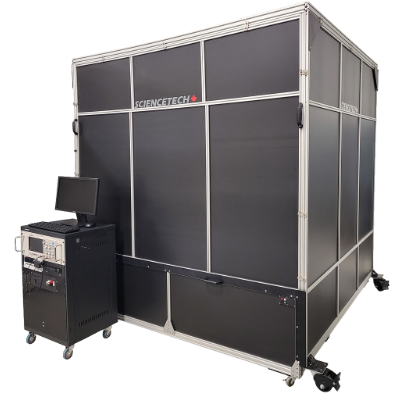 Sciencetech的PSS系列大面积闪光/脉冲太阳光模拟器,是专门为测试那些面积可达2米×2米的大型光伏组件而研发的。这款大面积脉冲太阳光模拟器使用了坚固耐用的氙气闪光灯,并配备了经过AM1.5G校准的太阳滤光片,这样就能尽可能地模拟出太阳光的真实光谱特性,其性能完全符合IEC60904-9 Ed.3.0标准的A类要求。
