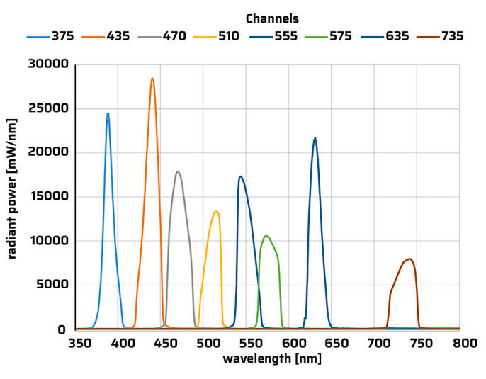 图:Luxyr 8通道LED光源光谱