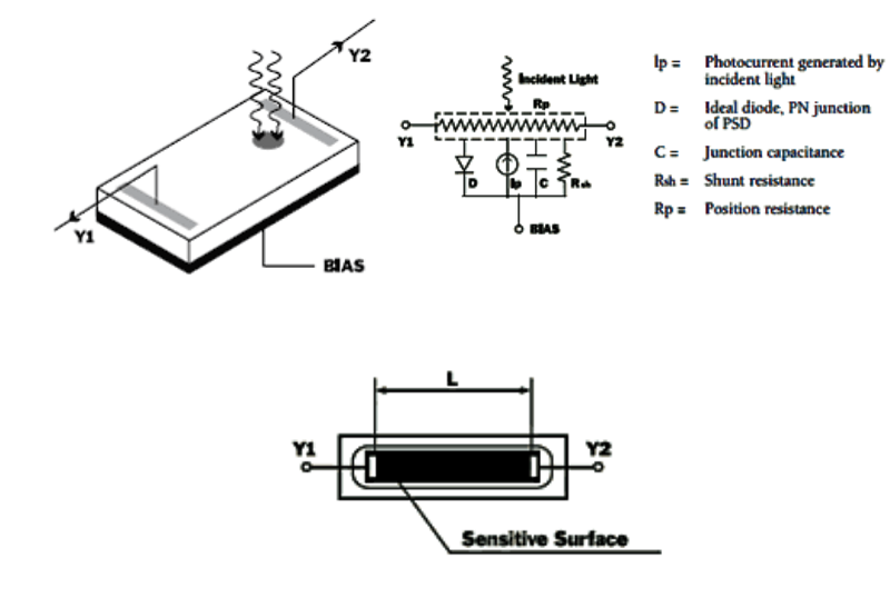 LASER COMPONENTS一维PSD能够沿单一轴向连续检测激光光斑位置,其结构包含三个电触点。位置坐标通过以下公式计算。