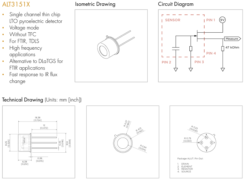LC先进热释电探测器ALT3151X2000数据规格表: