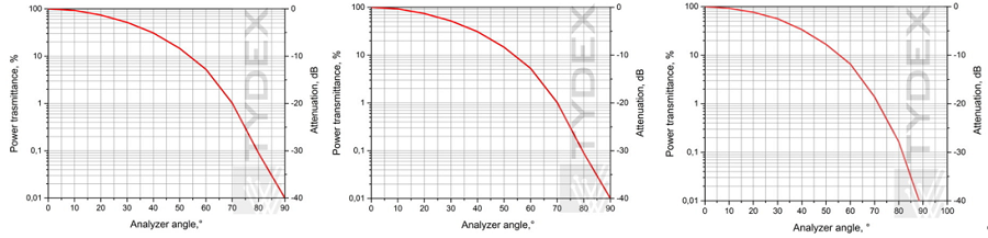 从图1我们可以看出,当检偏器与起偏器互相平行时,透过率最高,可>90%。当检偏器与起偏器垂直时,透过率最低,因此衰减程度最高。