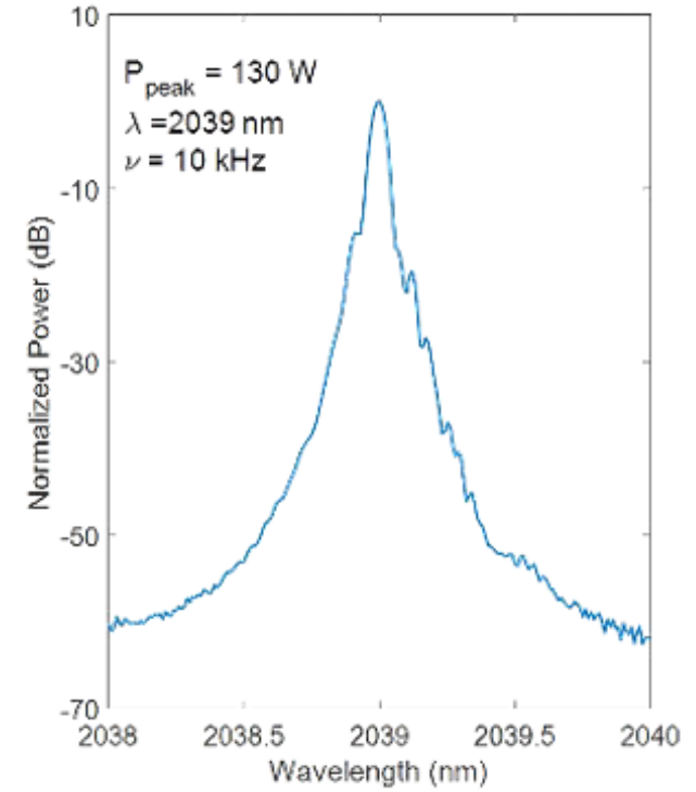 可调脉宽光纤激光器PHOENIX+2039归一化功率随波长变化关系,可见高功率双模式光纤激光器半具备窄线宽特点。
