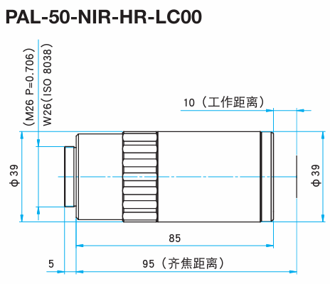 图:PAL-50-NIR-HR-LC00/PAL-NIR/PAL-NIR-HR/近红外用物镜/50x近红外用物镜/50x物镜尺寸图