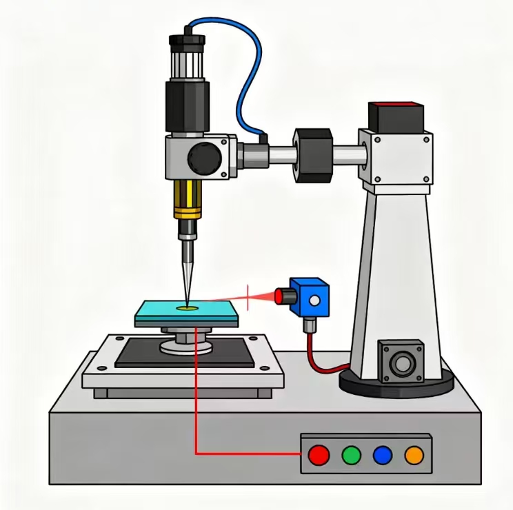 根据胡克定律,当原子力显微镜使悬臂末端的针尖接近样品表面进行表面形态扫描时,针尖与样品之间的相互作用力会改变悬臂的弯曲程度。在设备主体后方,一束由二极管激光器发出的光束经聚焦后打在微悬臂背面,悬臂弯曲时反射光斑也会发生偏移,探测器会实时记录其运动轨迹从而获取样品的表面形貌信息。